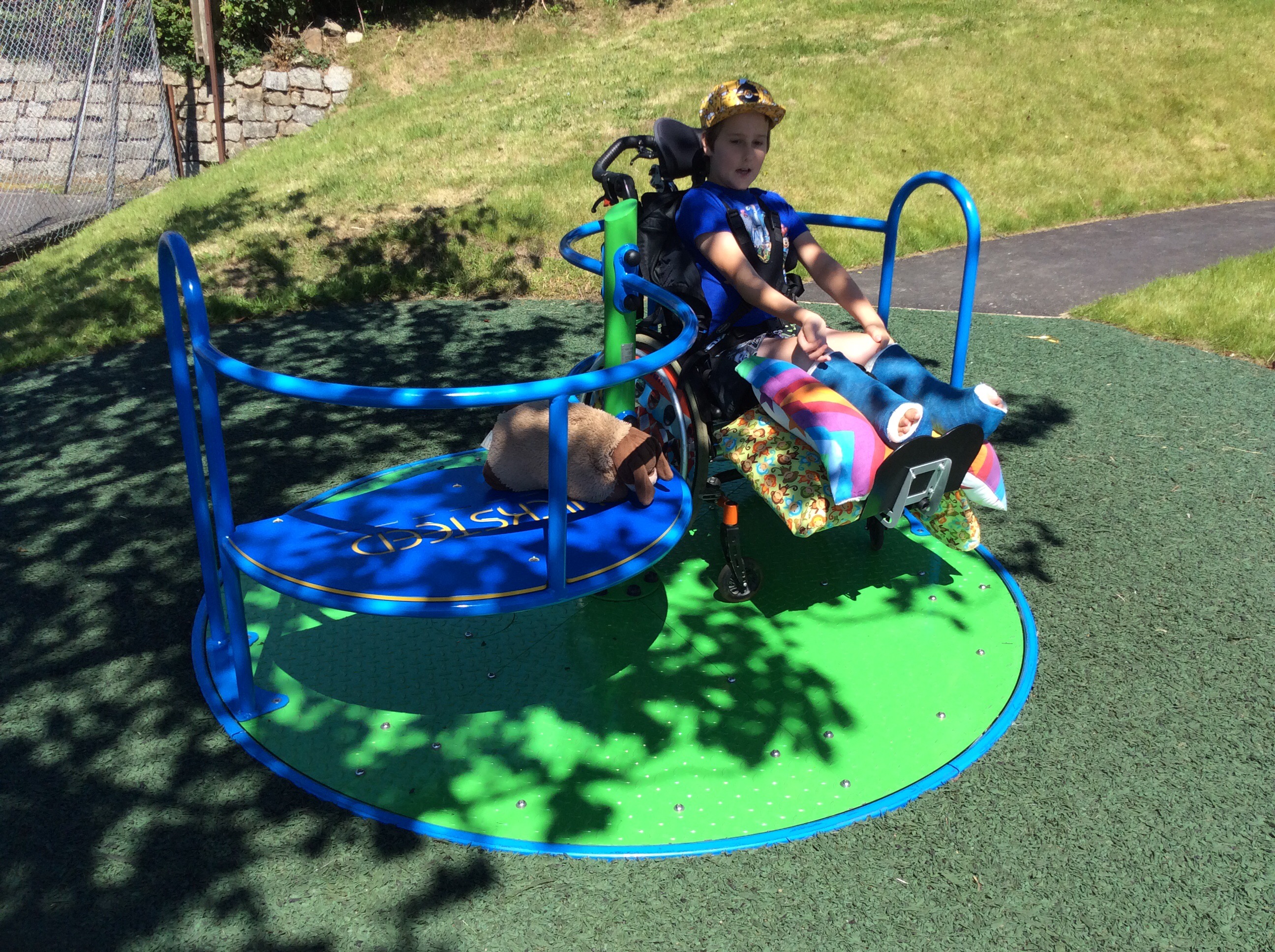 A park near us had a new piece of equipment installed recently, a wheelchair accessible roundabout.